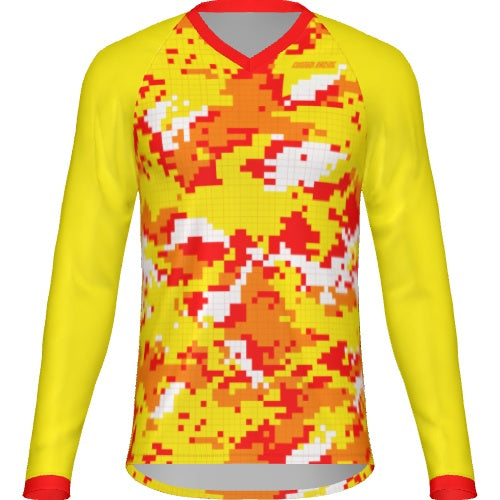 Maillot coupe classique manches longues Parfaitement adapte a la pratique du BMX, MX et VTT Enduro Impression int?grale en sublimation sans limite de couleurs + FLUO Col en V ou en rond imprim? ou en ?lastique bord c?te